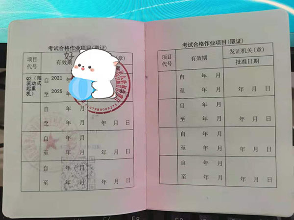 只考取了其中一項作業(yè)證,是不能操作其他工種的,每種起重機司機證是不通用的,這個一定要分清楚!