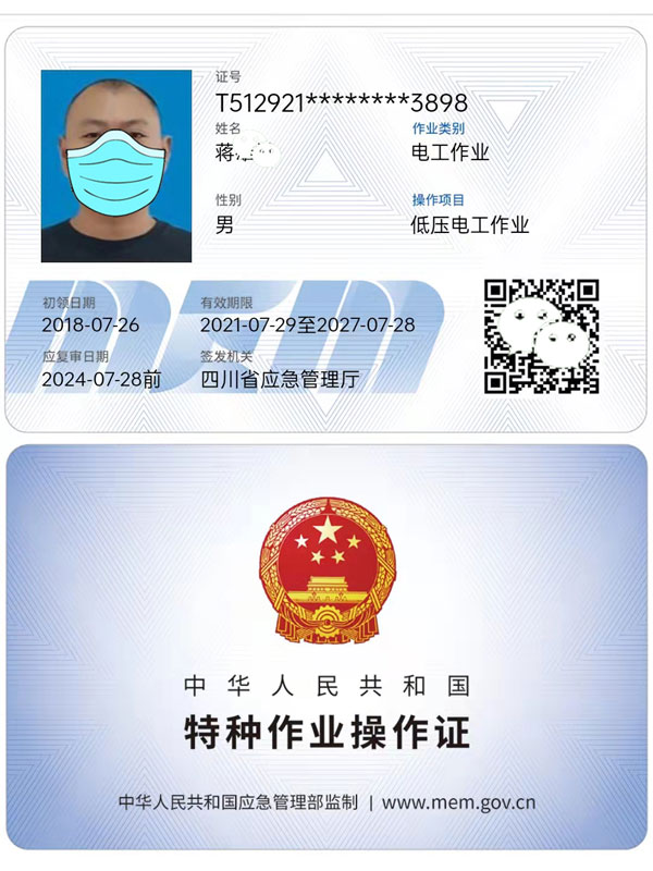 電工證屬于特種作業操作證的一種,也是常用的電工證。一般初入行的人員都需要考取低壓電工證。它是國家應急廳所發的,現在已經全面使用IC卡的形式,上崗時必須隨身攜帶。因為應急管理廳會不定時到電工作業場所進行檢查。一般檢查的方式是讀卡機查詢方法。一般地區的低壓電工證能從讀卡機讀取到信息,也能在國網查詢到信息。