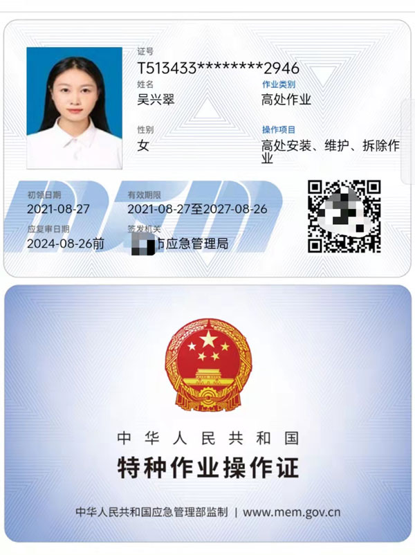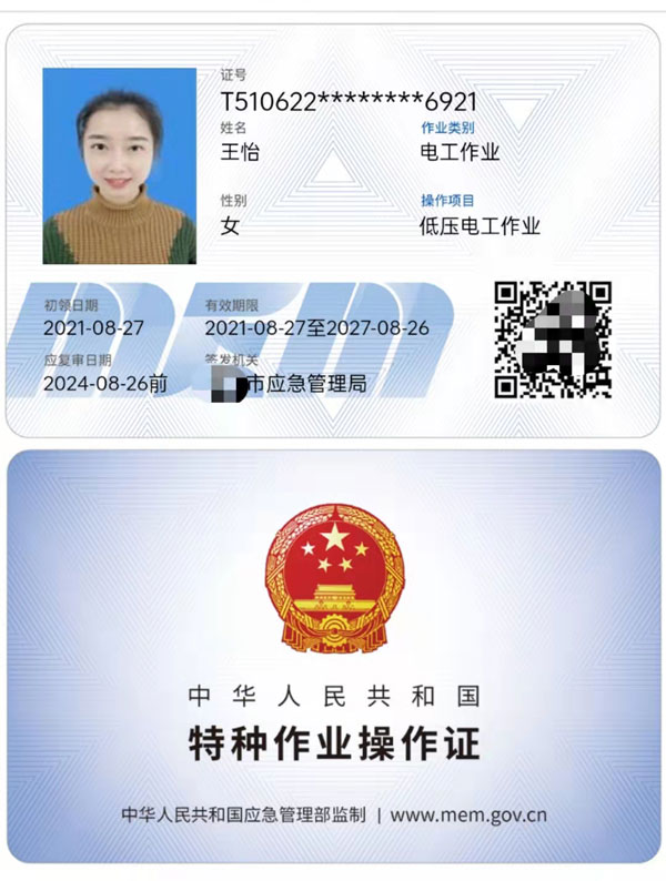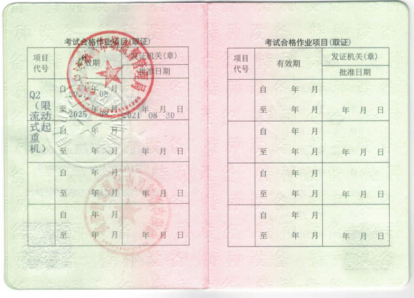 質(zhì)監(jiān)局特種作業(yè)證: