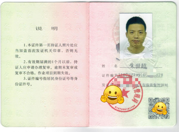 質(zhì)監(jiān)局特種作業(yè)證-樣版