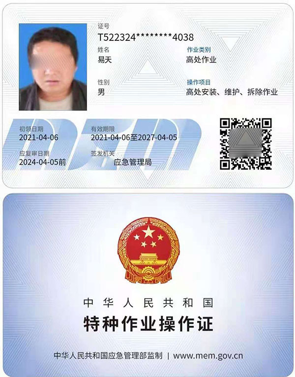 高空作業(yè)證由于是由國家應(yīng)急管理部統(tǒng)一管控,各省級應(yīng)急管理部門負責(zé)制作。特種作業(yè)操作證在全國通用,因此,想要辦理高處安裝維護拆除作業(yè)證必須在應(yīng)急管理局參加考試才能辦理,那具體怎么辦理呢,下邊帶您了解。
