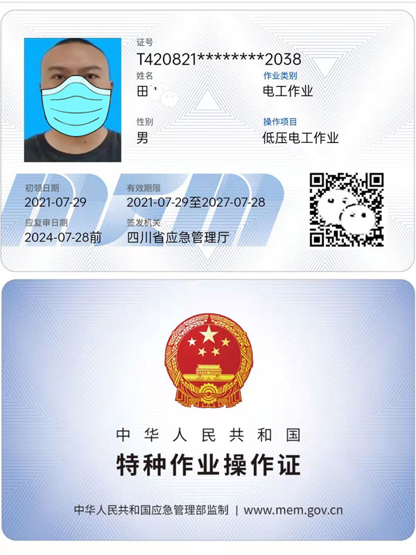 電工證有效期及復審期限 :特種人員操作證,每三年復審一次,