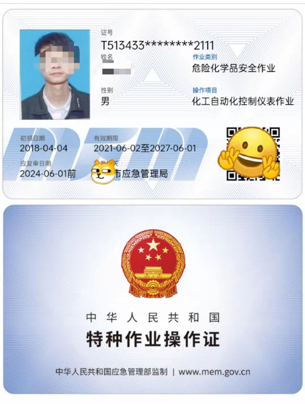 應(yīng)急管理局危化品作業(yè)證:過氧化工藝,烷基化工藝,氧化工藝,加氫工藝,化工自動化控制儀表作業(yè);