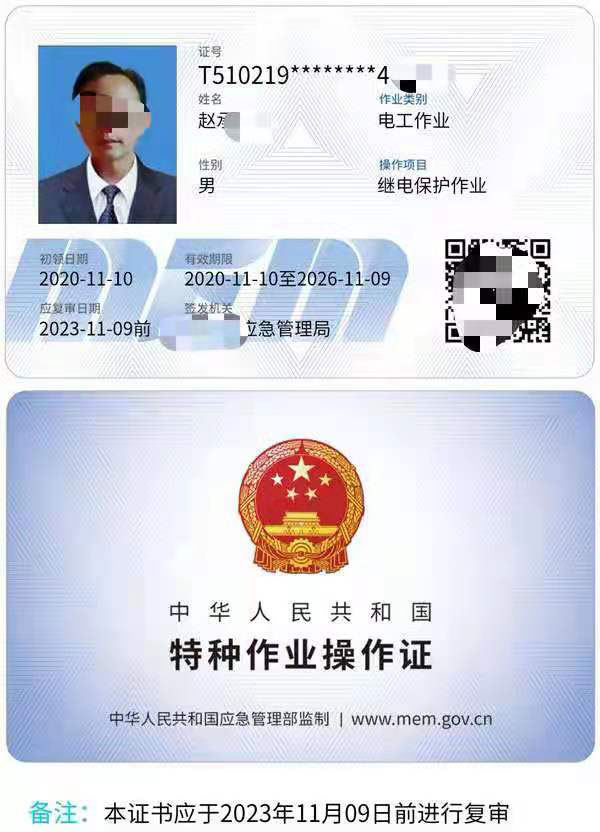 繼電保護作業證證書展示: