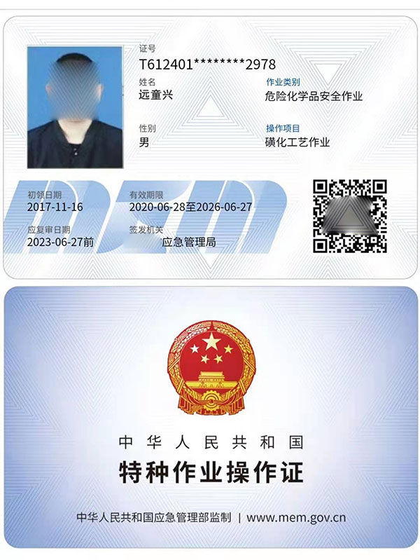 一、危險(xiǎn)化學(xué)品安全作業(yè)證,1,化工自動(dòng)化控制儀表作業(yè),2,過(guò)氧化工藝作業(yè),3,烷基化工藝作業(yè),4,氧化工藝作業(yè),5,加氫工藝作業(yè),從業(yè)人員上崗證,特種作業(yè)證是3年一審