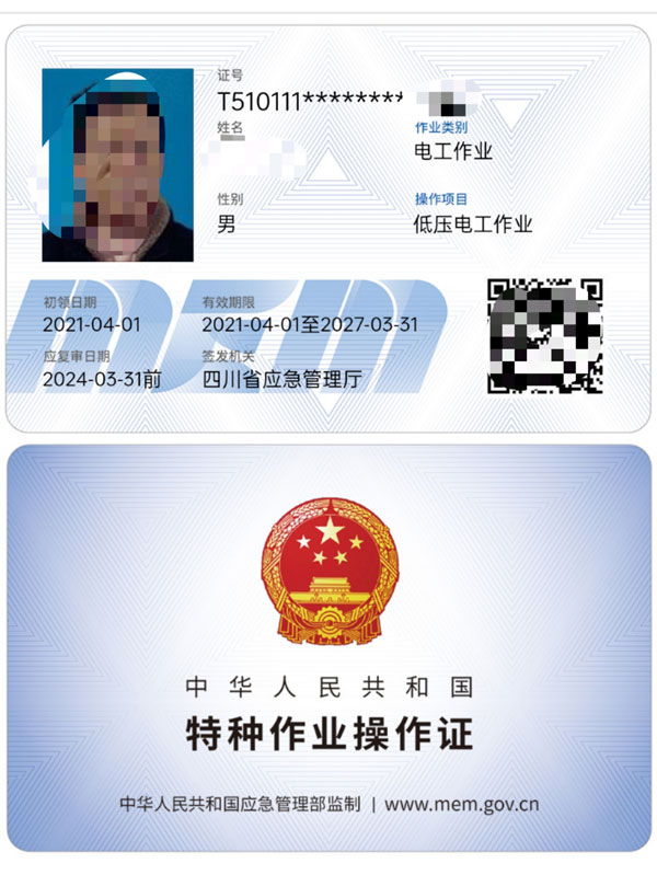低壓電工證,高壓電工證,熔化焊接與熱切割作業(yè),焊工證,電工作業(yè)-(電力電纜,繼電保護,電氣試驗,防爆電器作業(yè)),高處安裝維護拆除作業(yè),登高架設(shè)作業(yè),制冷與空凋設(shè)備運行操作作業(yè),制冷與空凋設(shè)備安裝修理作業(yè),施工吊裝作業(yè),施工挖裝作業(yè),危化品負(fù)責(zé)人/管理人員,危化品從業(yè)人員上崗證,新辦,(復(fù)審,換證,3年一審,6年一換)