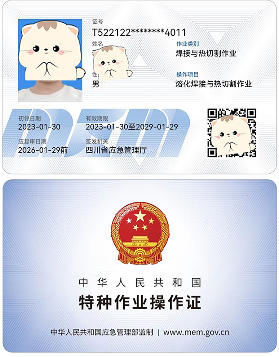 《特種作業(yè)證書樣板展示》