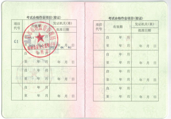 質監局特種作業證:叉車證N1,電梯維修T,特種安全設備管理A,起重機指揮Q1,Q2起重司機(限門座式起重機),Q2起重司機(限橋式起重機),Q2起重司機(限門式起重機),Q2起重司機(限纜索式起重機),Q2起重司機(限塔式起重機),Q2起重司機(限流動式起重機),Q2起重司機(限升降機),觀光和觀光列出司機N2,鍋爐壓力容器壓力管道管理A,電梯管理A,起重機械管理A,場(廠)內專用機動車輛管理A,工業鍋爐司爐G1,電站鍋爐司爐G2,鍋爐水處理G3,快開門式壓力容器操作R1,移動式壓力容器充裝R2,氣瓶充裝P,金屬焊接操作-壓力焊PE焊,非金屬焊接操作-壓力容器焊,食品檢驗員,化學檢驗員,農產品檢驗員(4年復審一次,需要到期前3個月進行)從事特殊工種作業人員必須熟悉相應特殊工種作業的安全知識及防范各種意外事故的技能。要求從業人員持卡上崗,即由國家安全生產監督管理局頒發《中華人民共和國特種作業操作證》方可上崗。